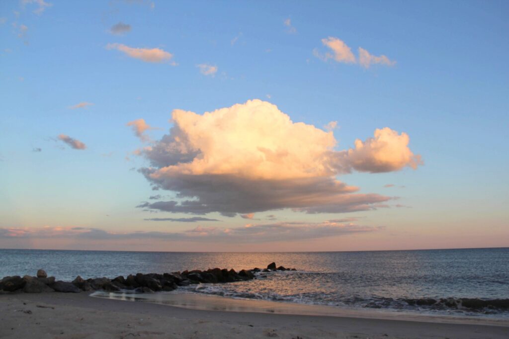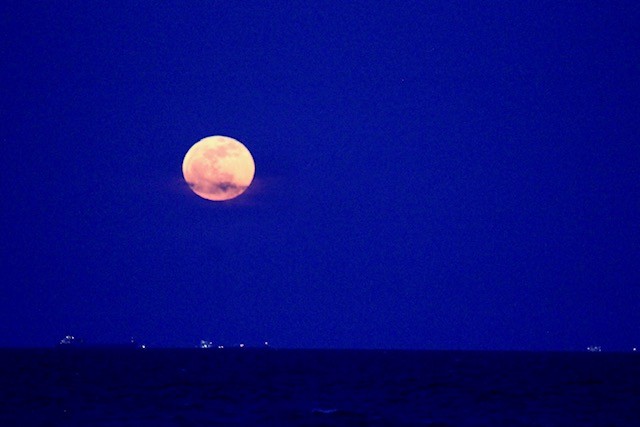 On the beach, at water’s edge The ocean is calm Soft waves A few cargo ships miles away Darkness but for the Moon Shining her light on the water below Look up, stars fill the sky A shooting star just now And our sister planets Mars just to the left of the Moon To my…
